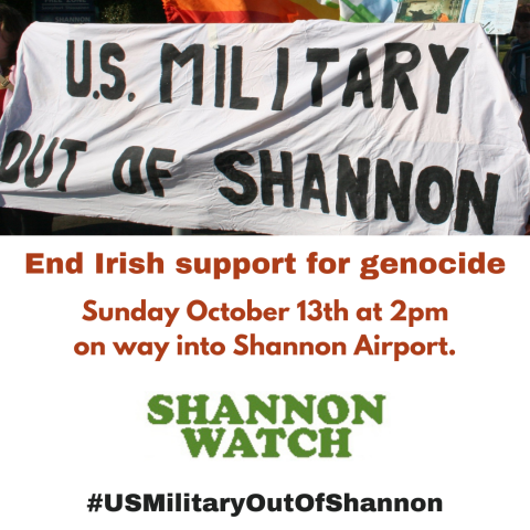 On Saturday October 12th, another protest against the US military use of the airport will take place at Shannon. Now more than ever we need as much focus as possible on Shannon’s involvement in the Gaza genocide, and so we welcome this protest too.